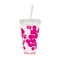 Kubek z pokrywką i słomką Dot Dot - różowy - Zak!designs