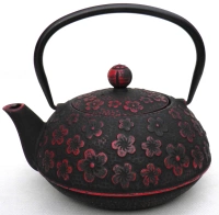 Dzbanek do herbaty żeliwny 0,9l kwiat czarno-czerwony - Zest for Life