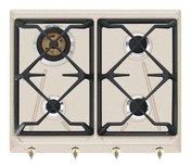 Smeg - Płyta gazowa, 60 cm, Coloniale Coloniale SrV864AvOgH2 Jasny brąz (pokrętła w kolorze mosiężnym)