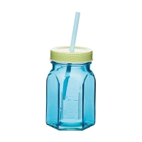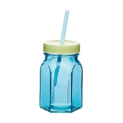 Słoik z nakrętką i słomką - Niebieski - Kitchen Craft