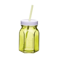 Słoik z nakrętką i słomką - Zielony - Kitchen Craft