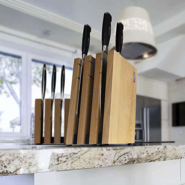 Noże japońskie, takie jak Santoku, Gyuto czy Nakiri, są zwykle cieńsze, lżejsze i ostrzejsze niż klasyczne noże europejskie. Zapewniają większą precyzję cięcia i idealnie nadają się do pracy z warzywami, rybami i mięsem. Często wykonane są z twardszej stali i wymagają odpowiedniej pielęgnacji.