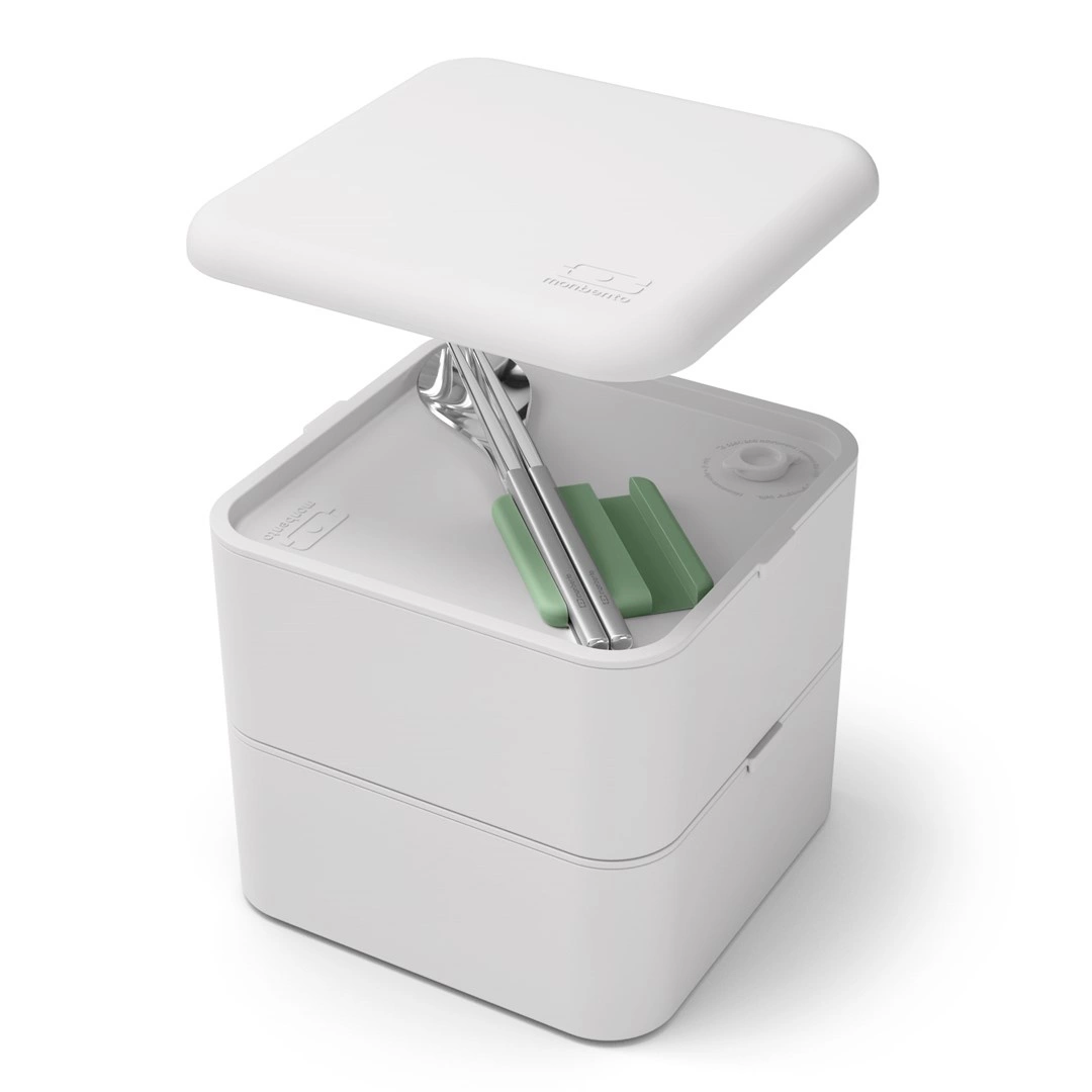 Wymiary lunchboxa wynoszą 18,5 x 9,4 x 10 cm (dł. x szer. x wys.), a pojemność każdej komory to 0,5 l. Zestaw wykonany jest z trwałego tworzywa sztucznego PBT, silikonu i elastanu. Dostępny w kolorze kremowym i zielonym, należy do kolekcji Original.