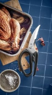 - Ostrze nożyc posiada specjalne wycięcie do łamania grubych kości przy porcjowaniu drobiu