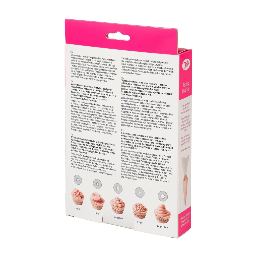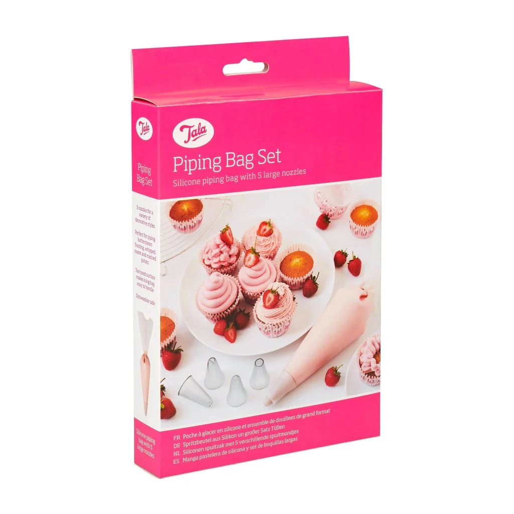 - Odkryj nowy wymiar w dekorowaniu słodkości! Rękaw cukierniczy Tala z 5 tylkami to niezastąpione narzędzie dla każdego pasjonata wypieków. Wykonany z wysokiej jakości silikonu, zapewnia precyzję i wygodę podczas tworzenia pięknych i smakowitych dekoracji.