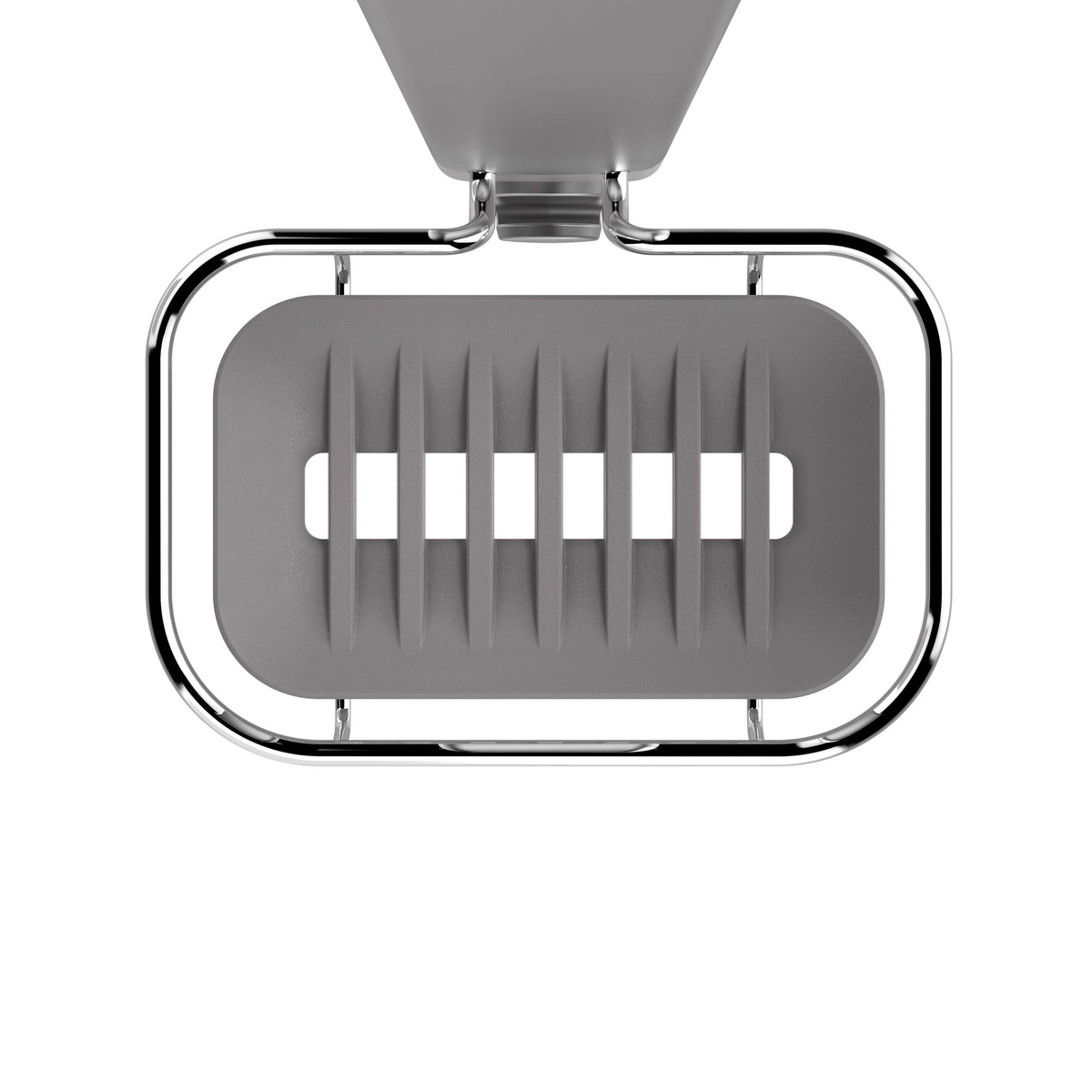 W zestawie znajduje się podłużnie perforowana mydelniczka, która zapobiega wyślizgiwaniu się mydła i utrzymuje je zawsze suche. Dodatkowo, koszyki posiadają trzy haczyki na boku, które mogą posłużyć do powieszenia maszynki do golenia, gąbki i innych przyborów. Wykonane ze stali nierdzewnej i anodowanego aluminium, koszyki i rama są nie tylko eleganckie, ale także łatwe do utrzymania w czystości.