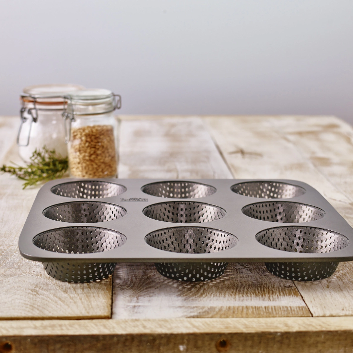 Chrupiące bułeczki na śniadanie? To możliwe dzięki perforowanej formie Birkmann, która pozwala na jednorazowy wypiek aż 9 bułek. Forma została wyposażona w wyjątkowo trwałą warstwę nieprzywieralną, co ułatwia wyciąganie wypieków z formy oraz czyszczenie po zakończeniu pieczenia.