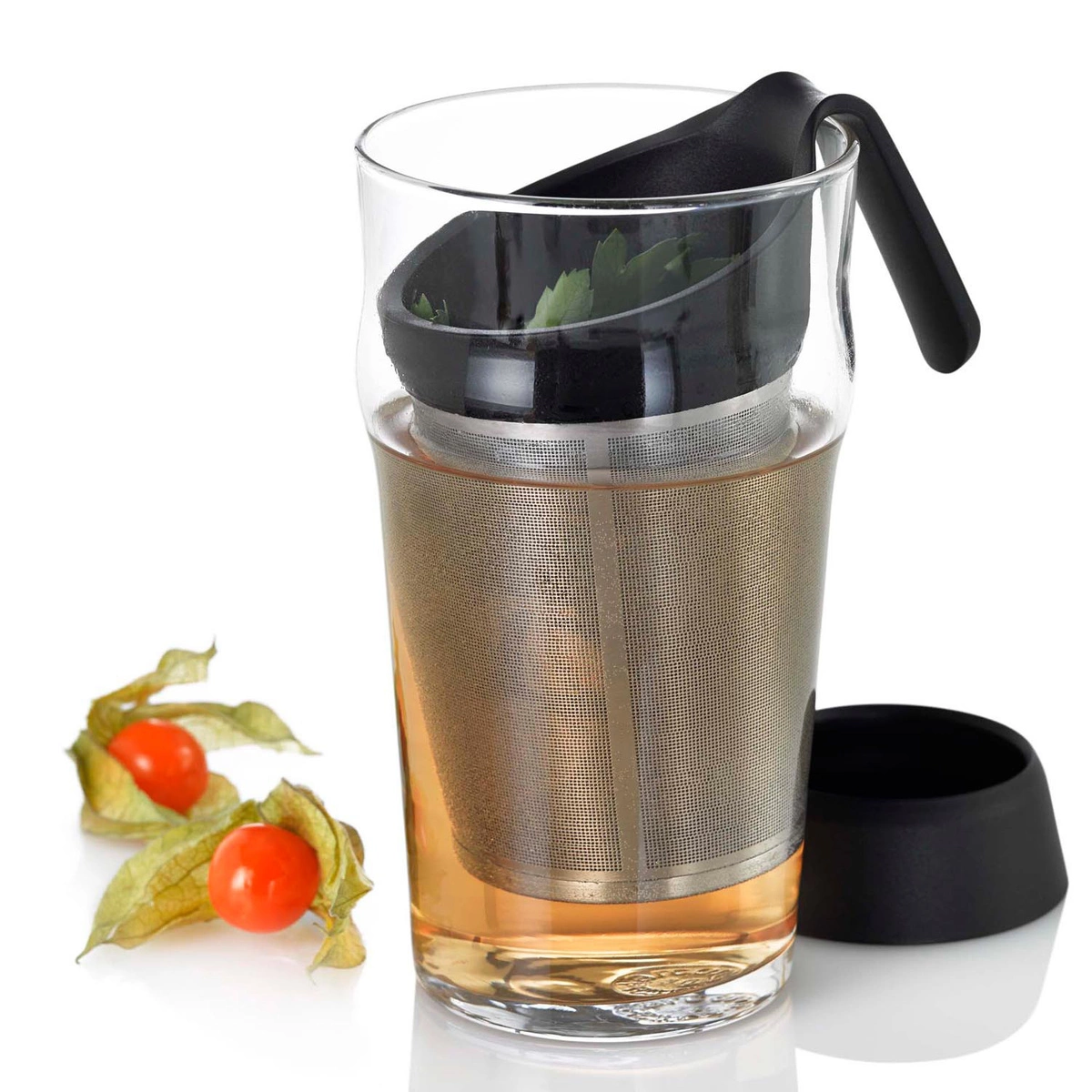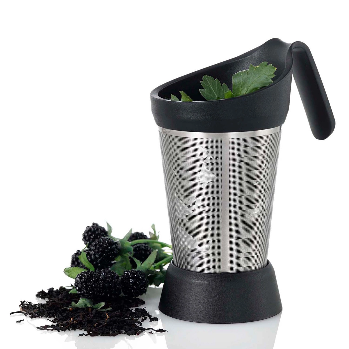 - Wygodny uchwyt, umożliwiający zawieszenie zaparzacza na brzegu kubka lub imbryka.