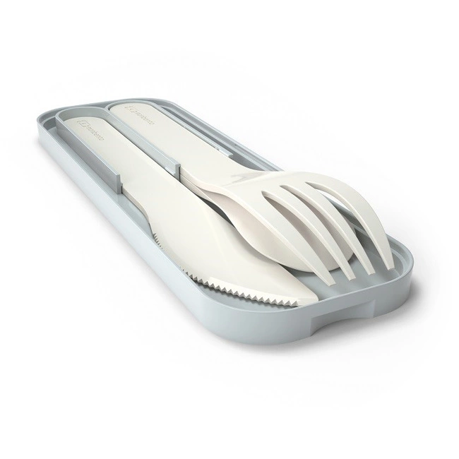 Prezentujemy Państwu sztućce podróżne Pocket Color, Natural marki MONBENTO. Ten komplet składa się z trzech elementów: łyżki, ząbkowanego noża i widelca. Sztućce są wykonane z biodegradowalnego bioplastiku oraz tworzywa sztucznego, co czyni je przyjaznymi dla środowiska. Dodatkowo, nie zawierają szkodliwych substancji takich jak BPA i BPS.