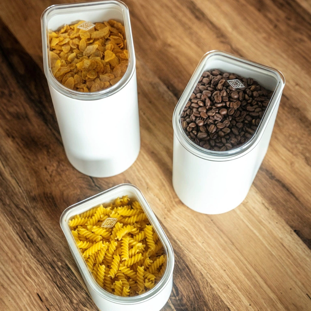 Pojemnik o pojemności 1,0 litra jest idealny do przechowywania kawy, cukru, mąki, płatków kukurydzianych, makaronu i wielu innych produktów. Dzięki swojemu kompaktowemu rozmiarowi, można go łatwo układać jedno na drugim, co pozwala zaoszczędzić miejsce w szafce.