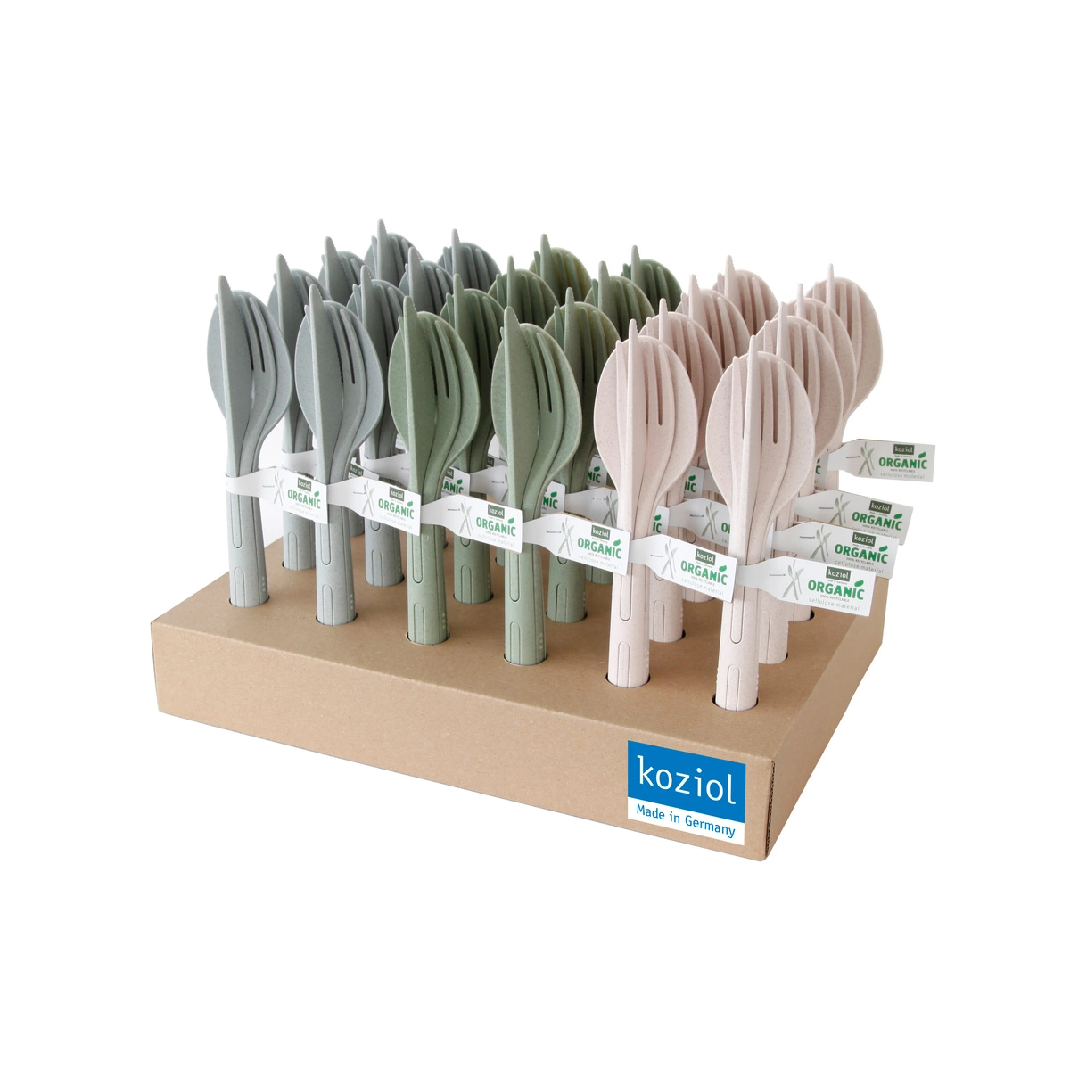 Seria Klikk Organic została wykonana z przyjaznego środowisku tworzywa sztucznego zawierającego celulozę, które w 100% podlega recyklingowi. Dzięki temu możesz cieszyć się swoimi ulubionymi sztućcami, nie obawiając się o wpływ na planetę.