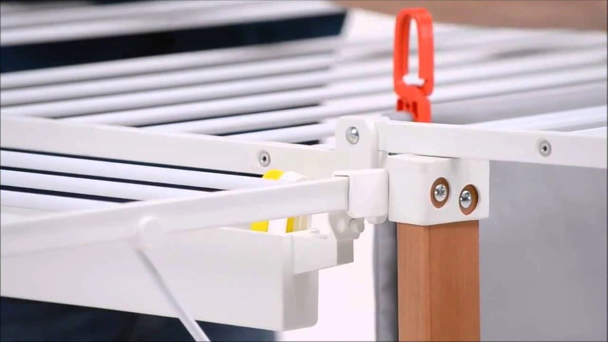 Rama suszarki wykonana jest z litego drewna, ale istnieje również wersja lakierowana w kolorze aluminium, która może być używana na zewnątrz. To sprawia, że suszarka jest solidna, stabilna i trwała.