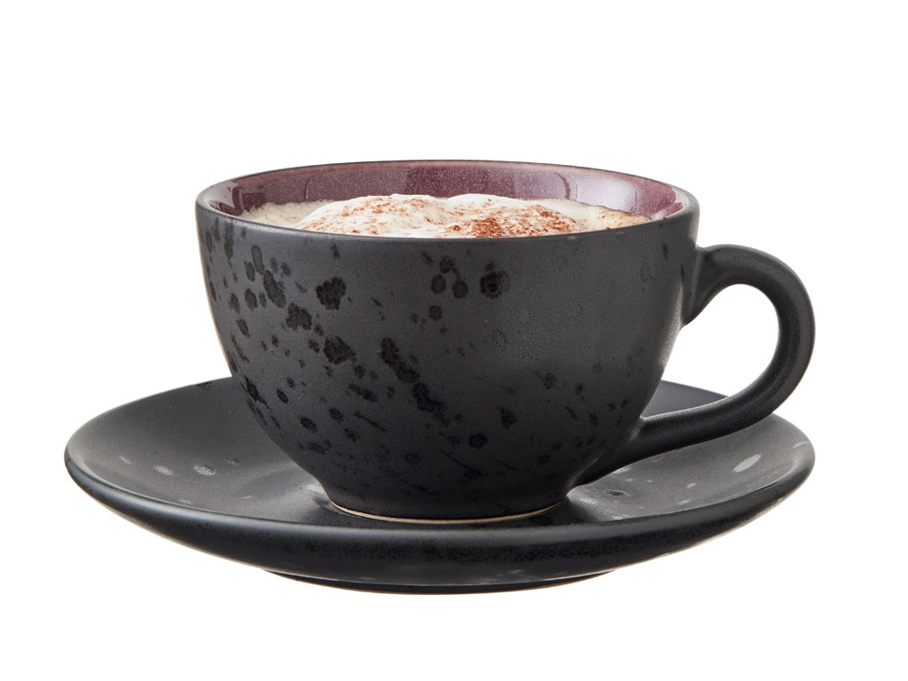 Ten elegancki zestaw filiżanek ze spodkiem Bitz to idealny wybór dla miłośników kawy. Każda filiżanka została wykonana z matowej, czarnej kamionki, która nadaje im wyjątkowego charakteru. Wewnętrzna strona miseczki jest pokryta błyszczącą emalią w pięknych kolorach: bursztynowym, jasnoróżowym, liliowym i kremowym.