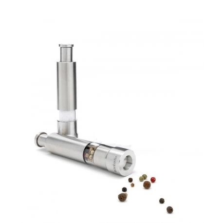 Prezentowany komplet może być świetnym pomysłem na prezent dla bliskiej osoby. Zestaw Crusherów Get Together 2szt Brabantia wyróżnia się wysoką jakością – przybory powstały na bazie szczotkowanej stali nierdzewnej, co dodatkowo zapewnia im wytrzymałą konstrukcję. Z łatwością można je napełniać – w tym celu wystarczy po prostu odkręcić ich spodnią część. Na komfort użytkowania wpływa możliwość skontrolowania poziomu napełnienia dzięki przezroczystym elementom. Zaletą crusherów jest również specjalnie wyprofilowana, stalowa końcówka, która gwarantuje efektywne kruszenie. Cały komplet jest sprzedawany w eleganckim pudełku. Pojemniki świetnie sprawdzą się między innymi w przypadku kolorowego pieprzu, soli morskiej, kminu rzymskiego lub nasion kolendry.