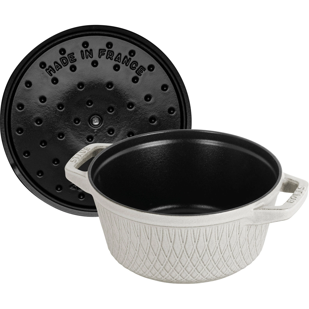 - Odkryj mistrzostwo gotowania z żeliwnym garnkiem Staub! Idealny do duszenia i pieczenia, zachowuje ciepło, wydobędzie pełnię smaków w Twoich potrawach. Trwały, elegancki, niezbędny w każdej kuchni.