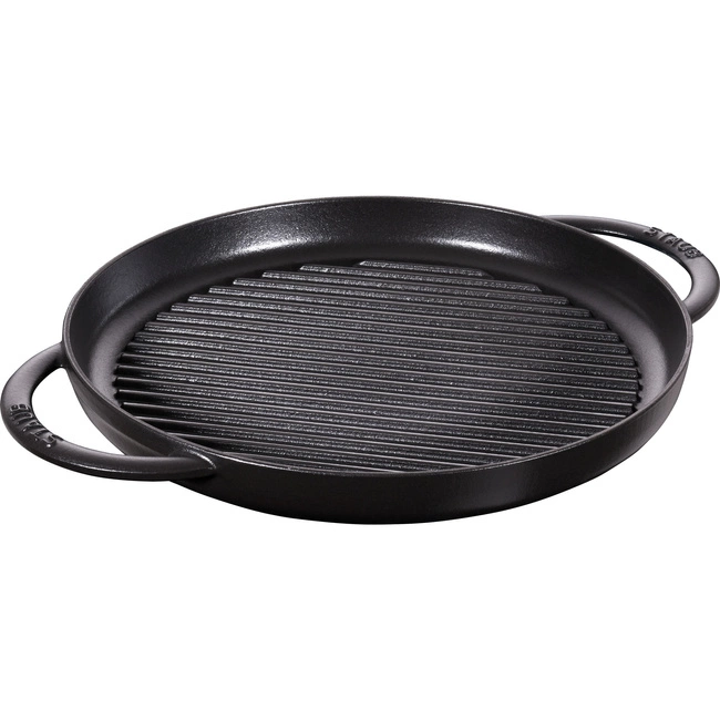 Okrągła patelnia żeliwna grillowa z dwoma uchwytami 30 cm, czarny - Staub