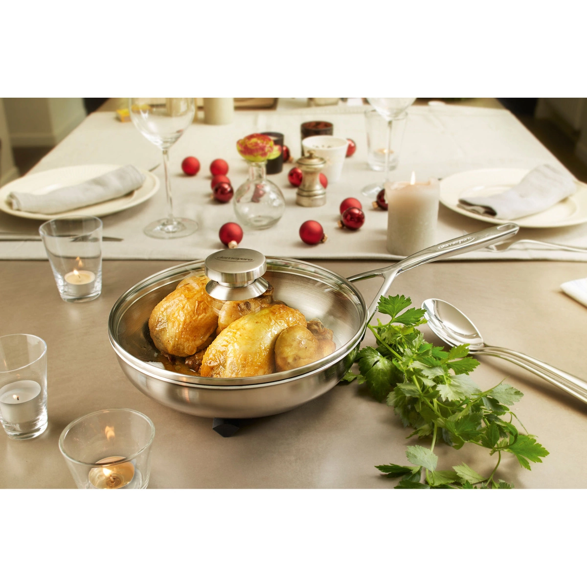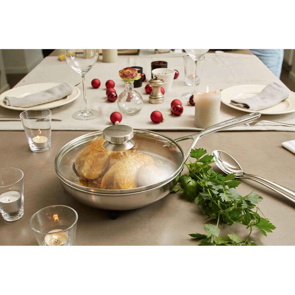 Stworzona z myślą o profesjonalistach i domowych kucharzach, patelnia Demeyere jest wyjątkowo trwała i efektywna. Siedmiowarstwowy materiał, łączący stal szlachetną z aluminium, gwarantuje szybkie i równomierne rozprowadzanie ciepła. Dzięki temu Twoje potrawy będą zawsze idealnie przygotowane.