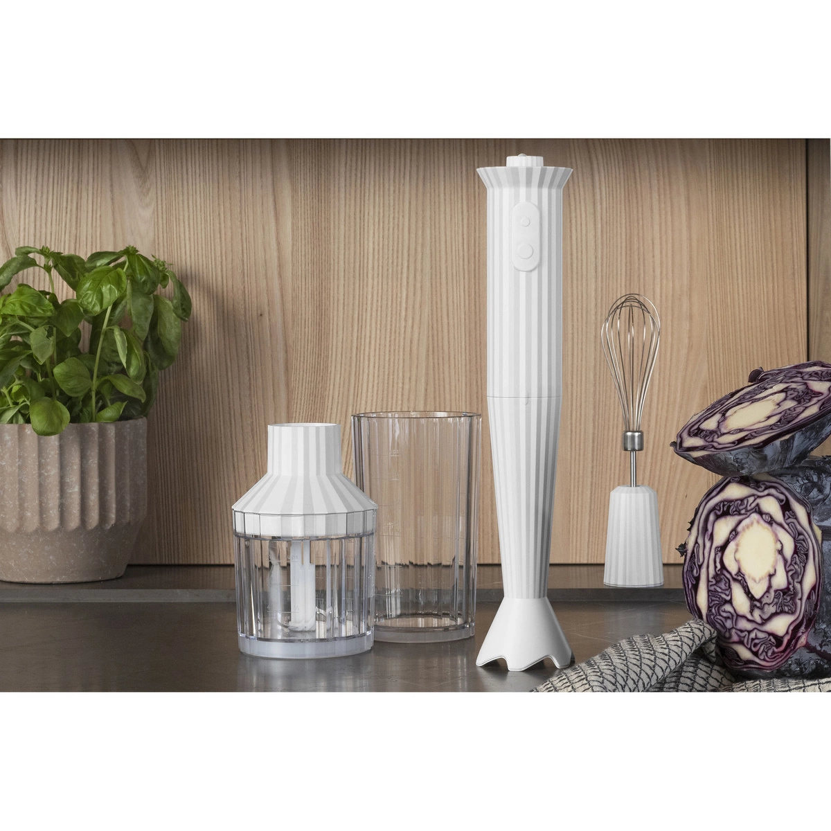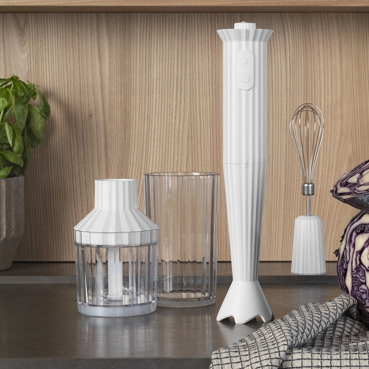 - Składa się z: blendera ręcznego, trzepaczki, siekacza, pojemnika z miarką