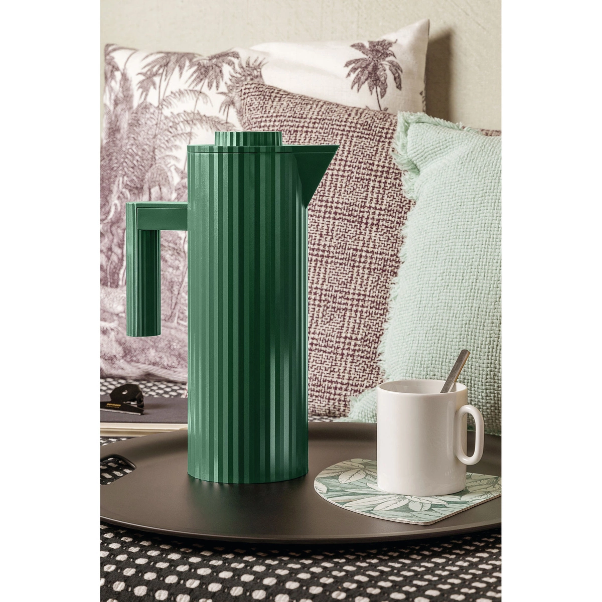 Termos Zielony Alessi jest lekki i łatwy w obsłudze, co czyni go niezwykle praktycznym wyborem na każdą okazję. Składa się z korpusu z nakrętką z termoplastycznej żywicy oraz wewnętrznego, dwuściennego pojemnika ze szkła termicznego. Nakrętka wyposażona jest w przycisk ze stali nierdzewnej, umożliwiający otwieranie i zamykanie dozowania napoju. Dodatkowo, na korpusie, nad uchwytem, znajduje się zagłębiony przycisk, który otwiera górną część dzbanka i umożliwia wyjęcie wewnętrznego pojemnika.