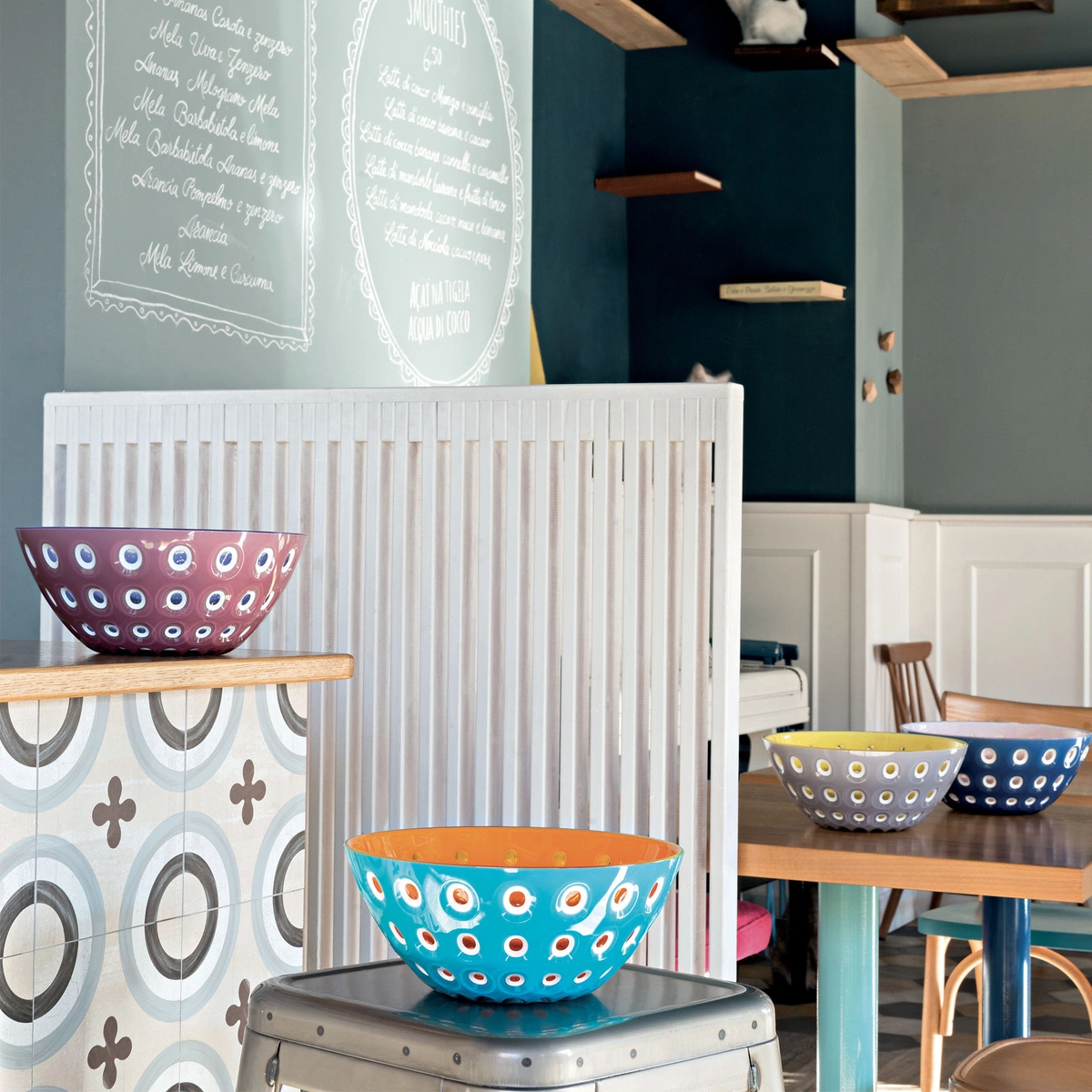 Misa 25 cm Le Murrine - Guzzini wyróżnia się unikalnym, kolorowym wzornictwem inspirowanym techniką weneckiego szkła. Każda misa jest niepowtarzalna dzięki indywidualnemu układowi kolorów i wzorów. To sprawia, że produkt ten nie tylko spełnia swoje praktyczne funkcje, ale również dodaje uroku każdemu stołowi.