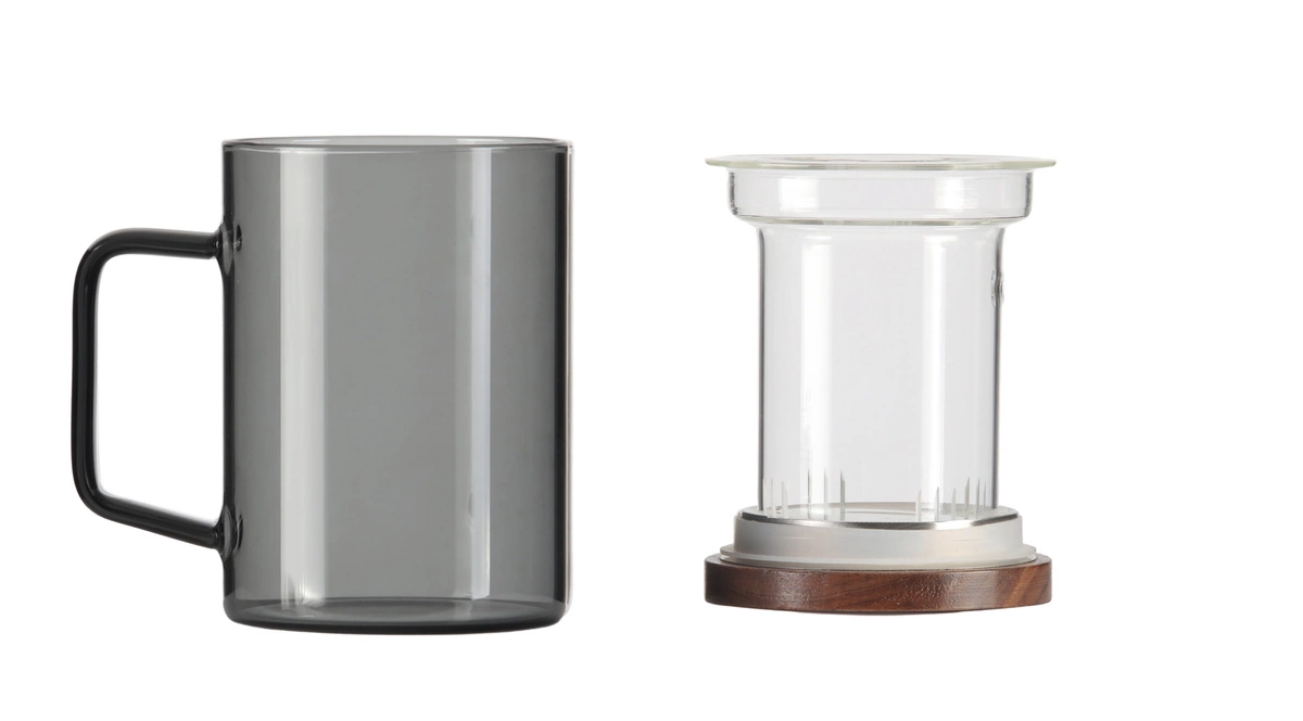 Grafitowe, szklane ścianki szklanki umożliwiają śledzenie procesu zaparzania i kontrolę intensywności herbaty. Produkt wykonany jest z najwyższej jakości szkła boro-krzemowego, które jest bezpieczne dla zdrowia i nie wpływa na smak napoju. Pokrywka z drzewa orzechowego i stali nierdzewnej, wyposażona w silikonową uszczelkę, zapewnia maksymalną szczelność.