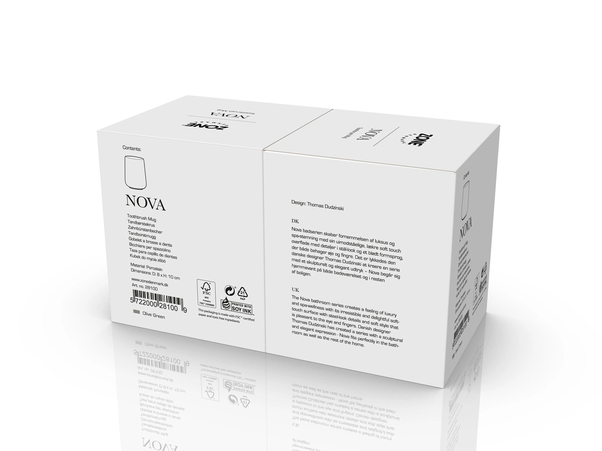 - Stylowy kubek na szczoteczki do zębów Nova One od Zone Denmark. Elegancki design i wysokiej jakości materiały sprawią, że Twoja łazienka zyska nowoczesny akcent. Idealny do codziennego użytku i łatwy w utrzymaniu czystości.
