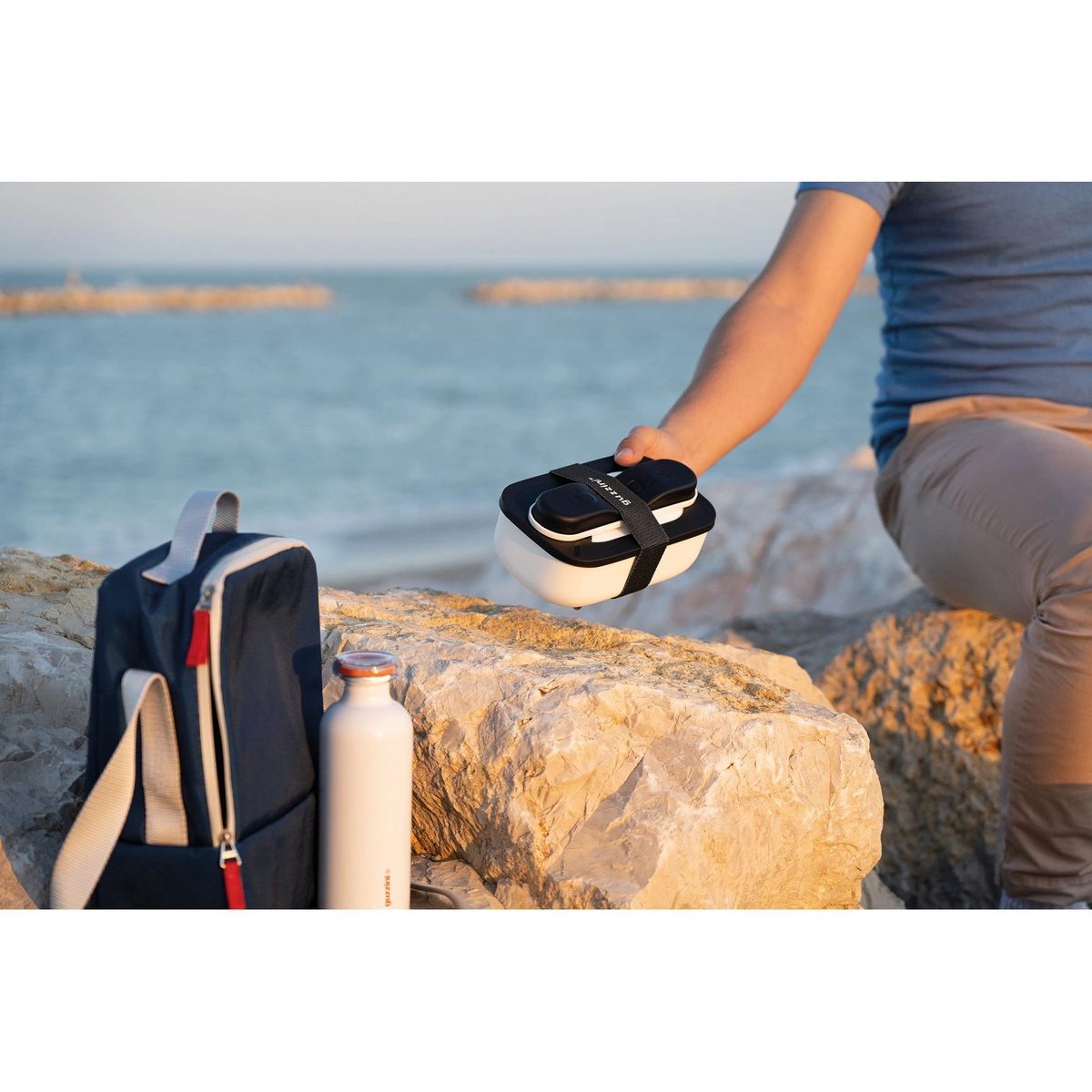 Zestaw lunch box z podróżnymi sztućcami Store&Go - Guzzini został zaprojektowany z myślą o codziennym użytkowaniu. Dzięki kompaktowym wymiarom, łatwo zmieści się w torbie czy plecaku, a wygodne zamknięcie zapewnia, że jedzenie pozostaje świeże i nie wycieka.