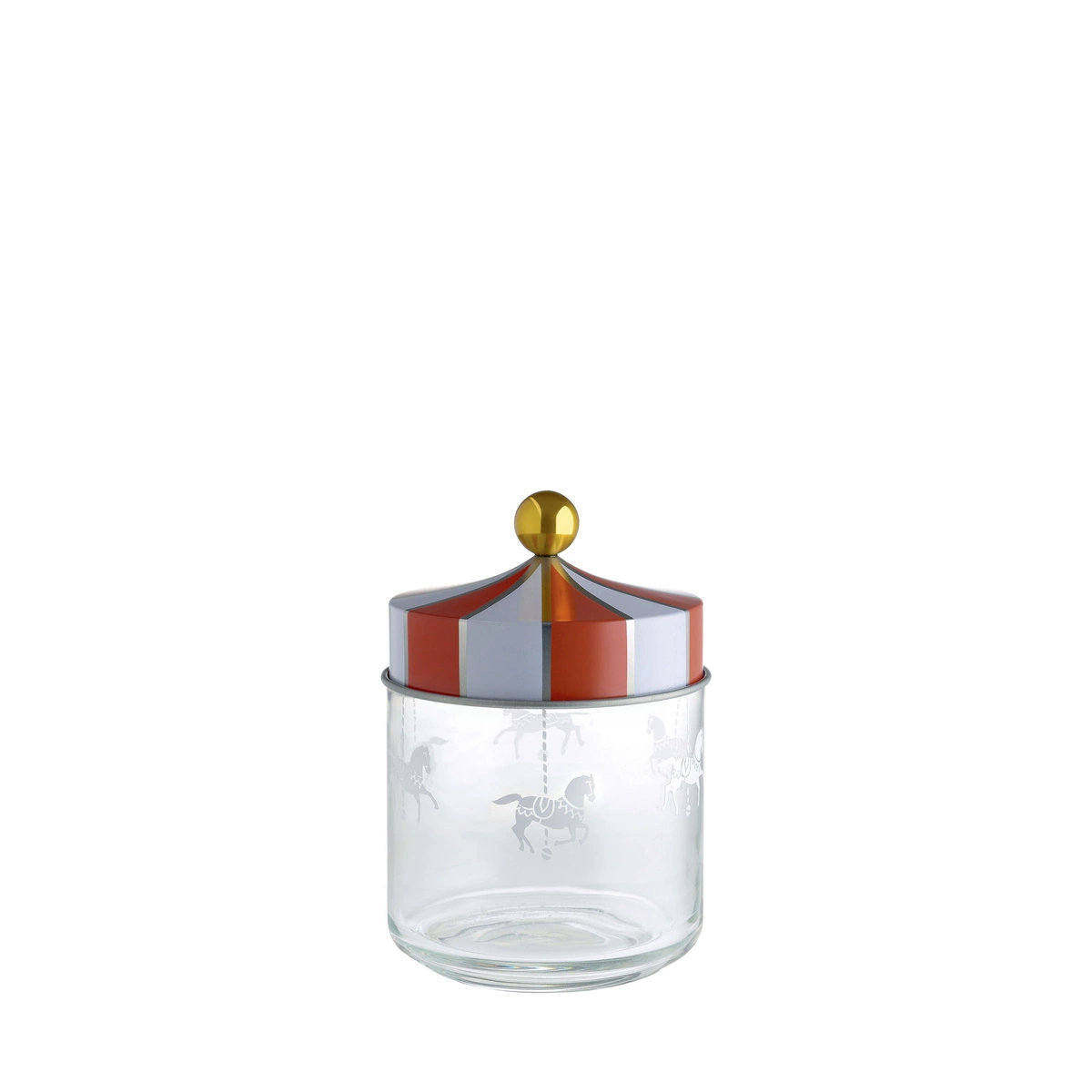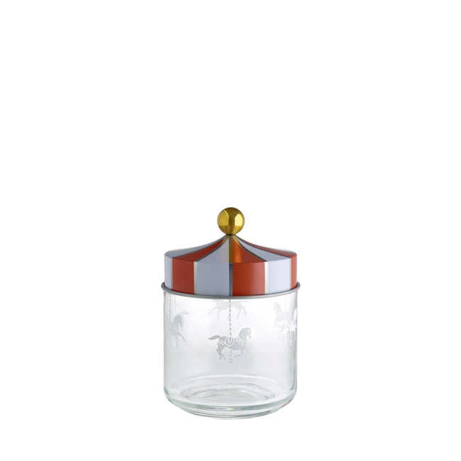 Jednym z najbardziej wyróżniających się elementów tego pojemnika jest jego dekoracyjna forma pokrywki oraz wzór naniesiony na szklany pojemnik metodą sitodruku. Inspiracja estetyką cyrkowego namiotu nadaje produktowi niepowtarzalny charakter.