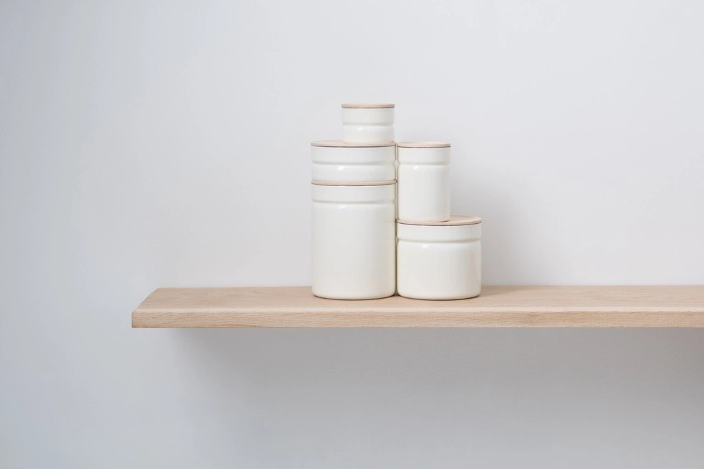 RIESS - Pojemnik niski z drewnianą pokrywą 0,6l Pure White to elegancki i funkcjonalny pojemnik, który doskonale sprawdzi się w każdej kuchni. Zaprojektowany przez renomowane biuro projektowe Dottings, pojemnik łączy w sobie nowoczesny design i ponadczasową formę, co czyni go idealnym dodatkiem do każdego wnętrza.