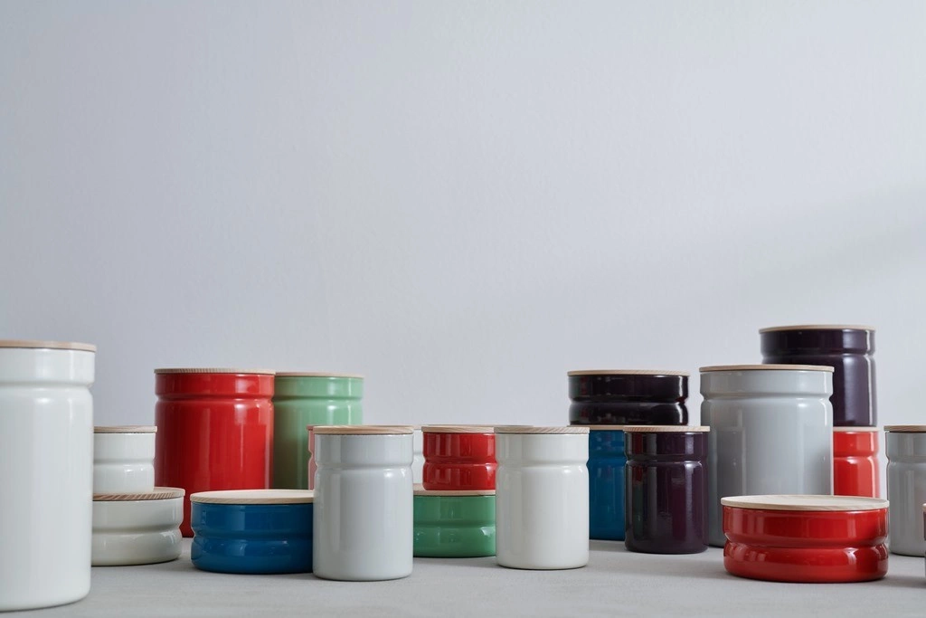 Pojemnik wykonany jest z żelaza pokrytego szkliwem ceramicznym, co gwarantuje trwałość i odporność na uszkodzenia. Pokrywa z drewna jesionowego szczelnie zamyka pojemnik, zachowując świeżość przechowywanych produktów.