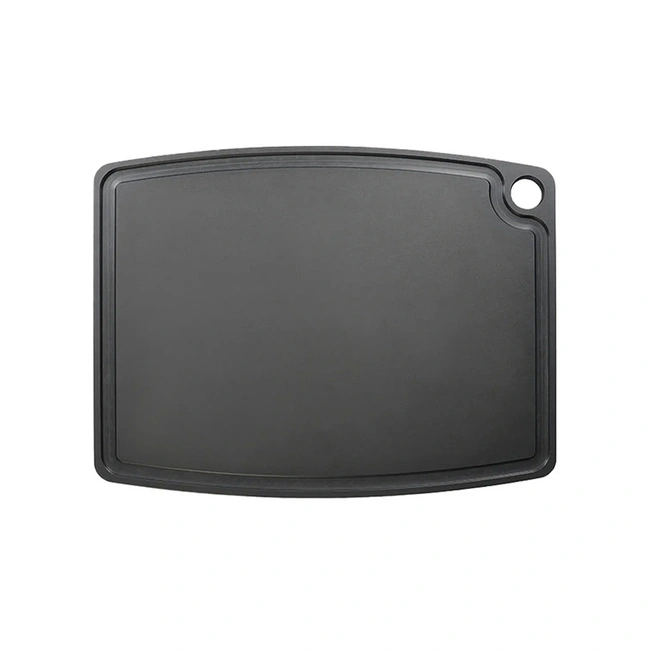 Deska do krojenia GOURMET PROFESSIONAL - Jade oferuje nie tylko trwałość, ale również praktyczność w codziennym użytkowaniu. Dzięki głębokiemu rowkowi na spływające soki i płyny, krojenie mięsa, ryb czy soczystych owoców staje się znacznie łatwiejsze i bardziej higieniczne. Deska jest także dwustronna, co zwiększa jej funkcjonalność.