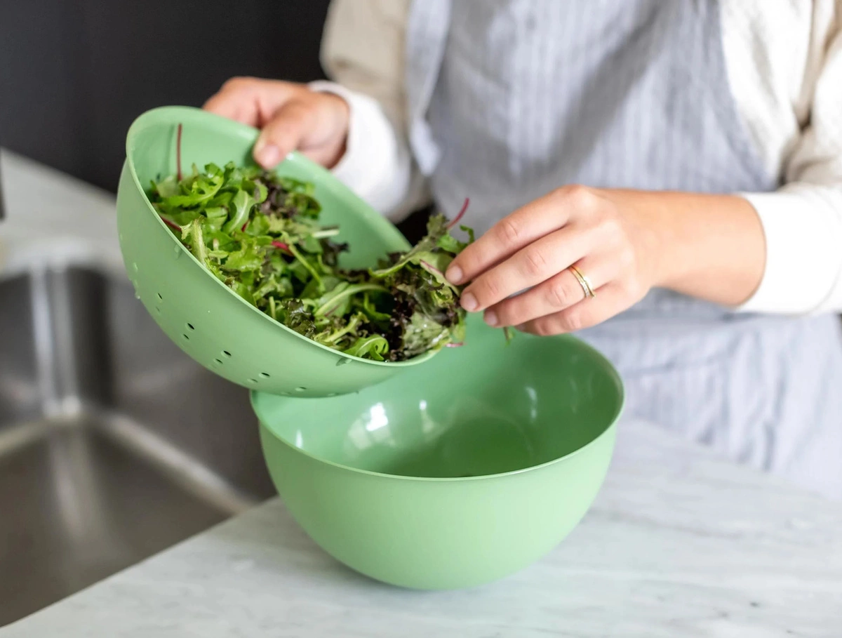 Produkt wykonany jest z wysokiej jakości tworzywa sztucznego, które jest w 100% neutralne pod względem emisji dwutlenku węgla. **Bez BPA i melaminy**, co gwarantuje bezpieczeństwo podczas kontaktu z żywnością. Dodatkowo, durszlak jest łatwy do czyszczenia i można go myć w zmywarce, co znacznie ułatwia codzienne użytkowanie.