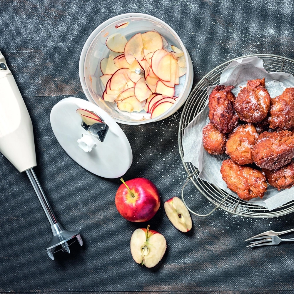 - Wszechstronne zastosowanie: W zestawie znajdują się cztery końcówki, które pozwalają na przygotowanie kremów, ubijanie piany, miksowanie gładkich mas oraz rozdrabnianie suchych i mokrych składników.