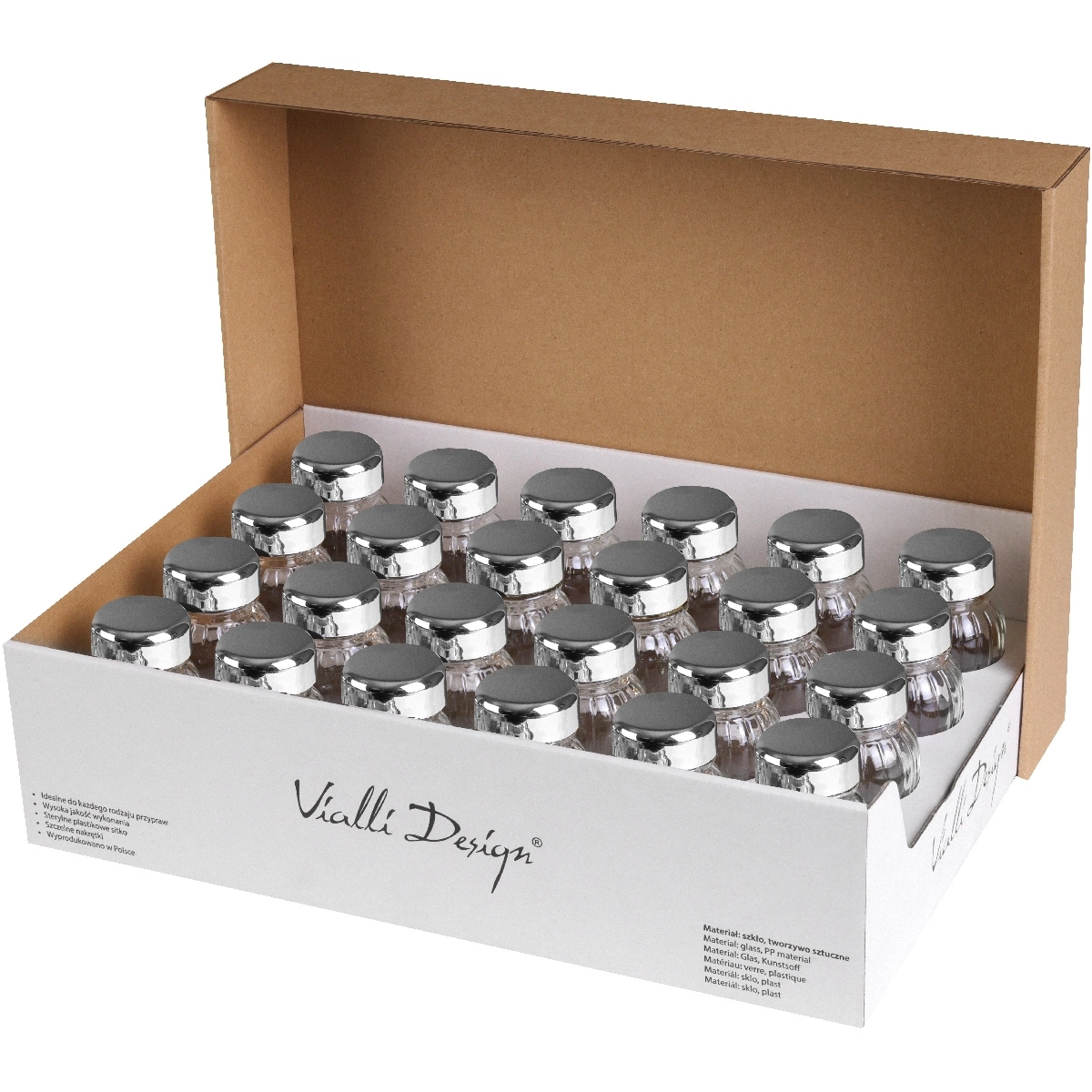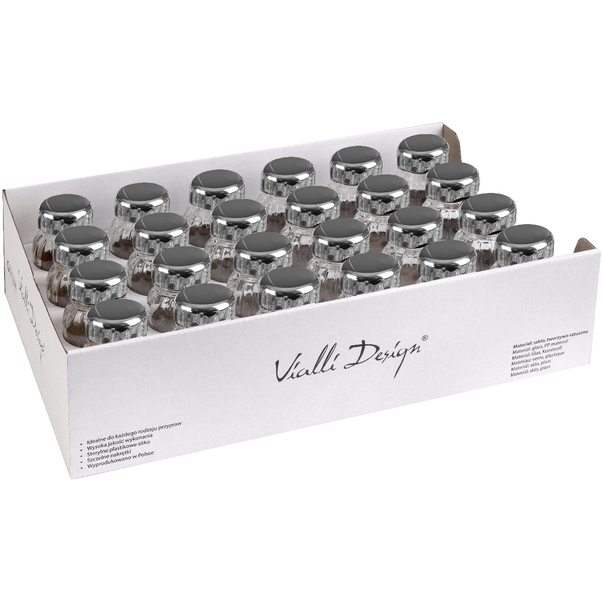 - Odkryj elegancję i funkcjonalność z zestawem Vilagio od Vialli Design - 24 słoiczki na przyprawy, idealne do każdej kuchni.