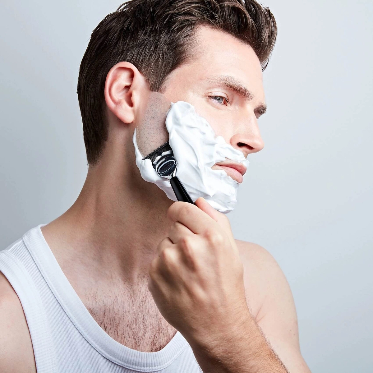 - Ergonomiczny design: Stożkowy kształt uchwytu maszynki zapewnia wygodę podczas golenia, umożliwiając precyzyjne ruchy i łatwe manewrowanie.