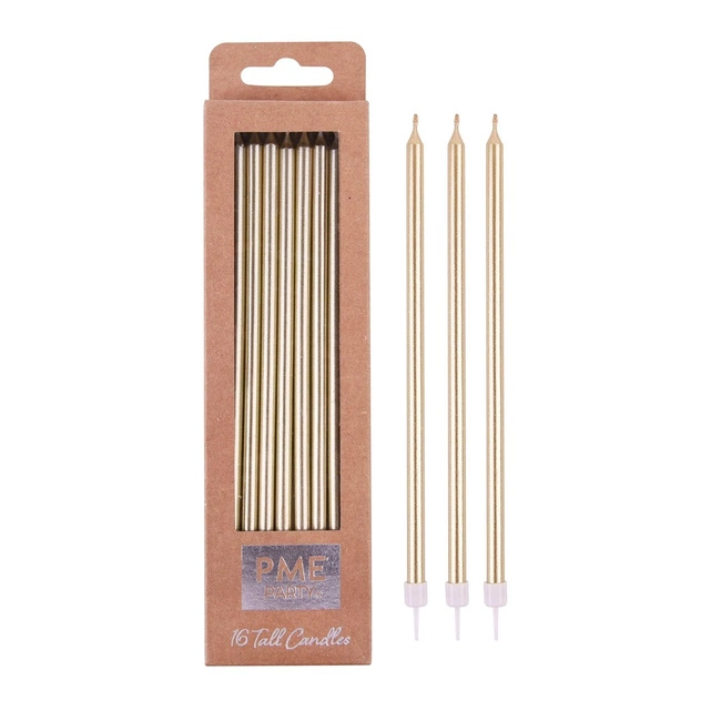 Pme zestaw 16 wysokich świeczek z podstawkami 18 cm złoty