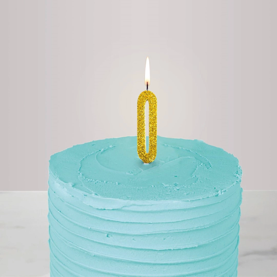 Elegancka świeczka cyfra 0 w złotym kolorze