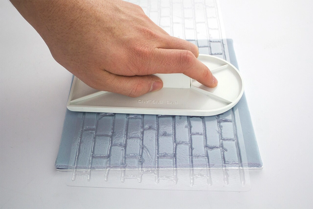 - Umieść matę na rozwałkowanej masie i delikatnie przyciśnij, aby wytłoczyć wzór.