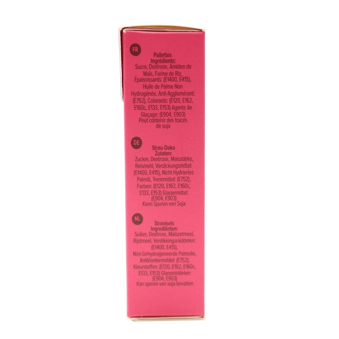 PME Posypka cukrowa I Love You dostępna jest w opakowaniu o wadze 60 g. Oto szczegóły dotyczące składników:
