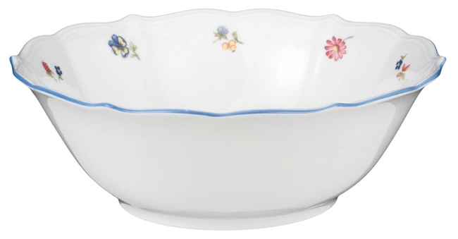 Wykonana z wysokogatunkowej porcelany w śnieżnobiałym odcieniu, miska SELTMANN SONATE NOSTALGIA zachwyca subtelnym zdobieniem w postaci polnych kwiatów oraz delikatnej niebieskiej obwódki. Takie detale wprowadzają na stół sielski klimat, który sprawi, że każde spotkanie nabierze wyjątkowego charakteru. Falowane brzegi miski oraz precyzyjne wykonanie podkreślają jej rustykalny charakter, co czyni ją idealnym wyborem dla miłośników klasyki w nowoczesnym wydaniu.