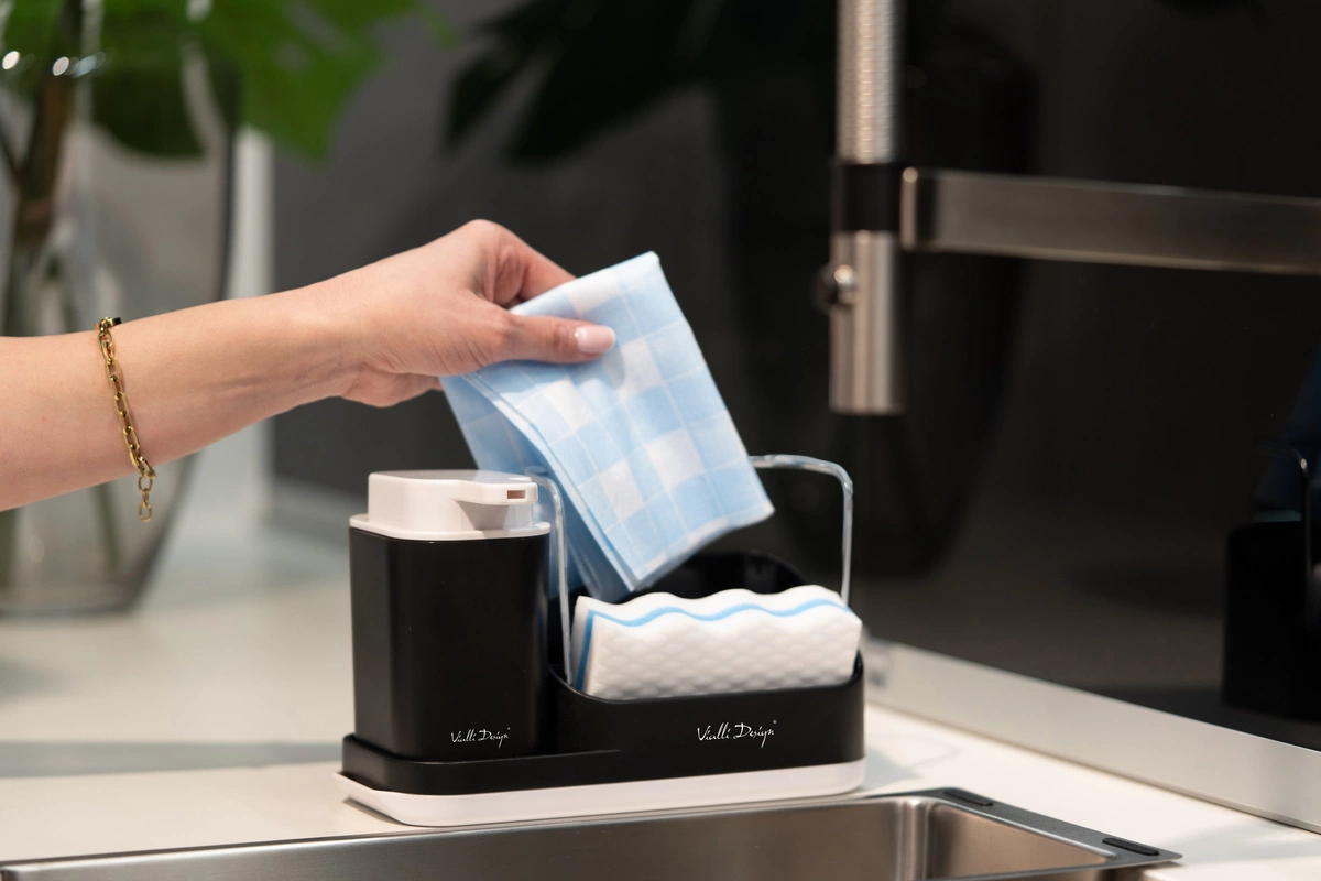 Nie musisz już więcej szukać gąbki czy ścierki po całej kuchni – dzięki organizerowi Livio Duo wszystko masz pod ręką, co znacznie ułatwia codzienne obowiązki.