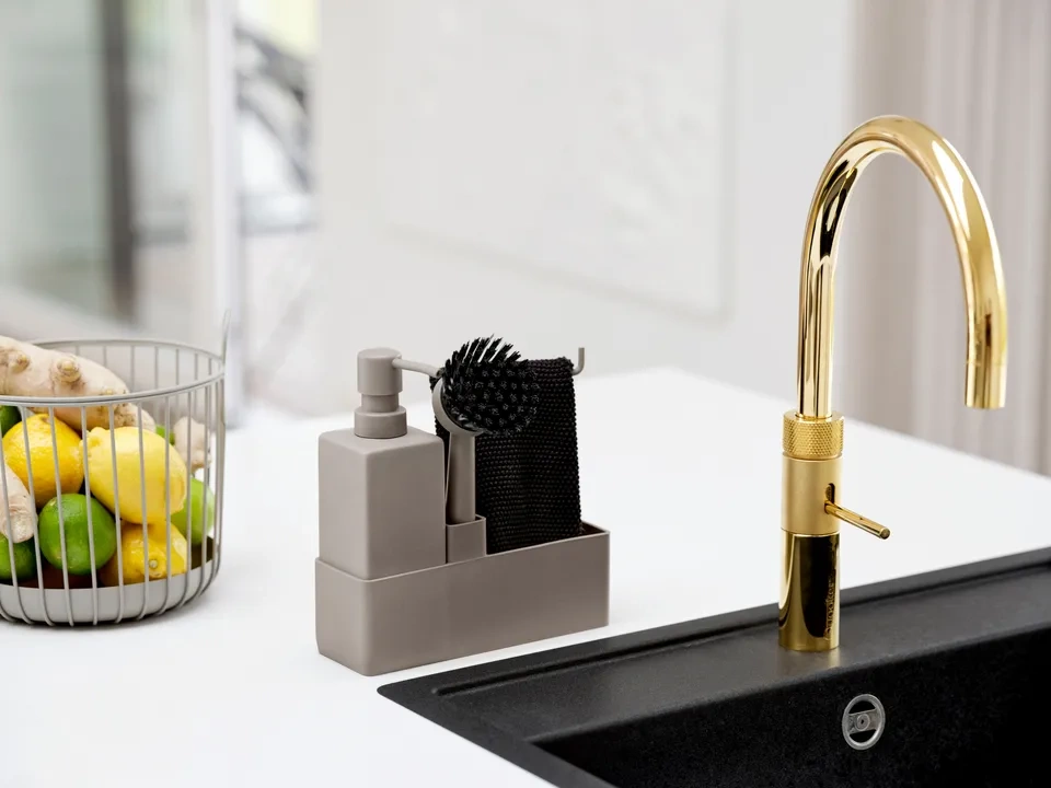 - Utrzymaj porządek w kuchni z eleganckim organizerem do zlewu. Praktyczny design i dołączona ściereczka sprawią, że codzienne czynności będą łatwiejsze.