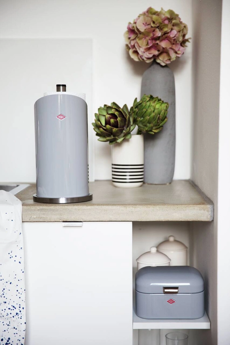 - Elegancki stojak na papier kuchenny Wesco to idealne połączenie funkcjonalności i stylu, które ułatwi organizację Twojej kuchni i doda jej nowoczesnego charakteru.