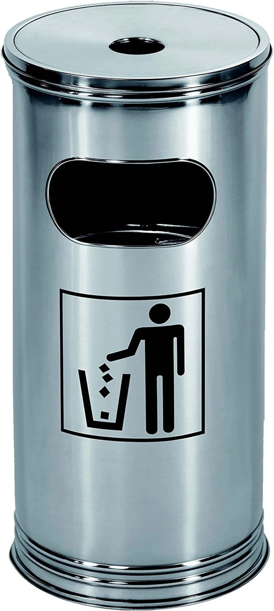 - Elegancki kosz na śmieci z wbudowaną popielniczką z wysokiej jakości stali nierdzewnej. Idealny do nowoczesnych wnętrz i przestrzeni publicznych.