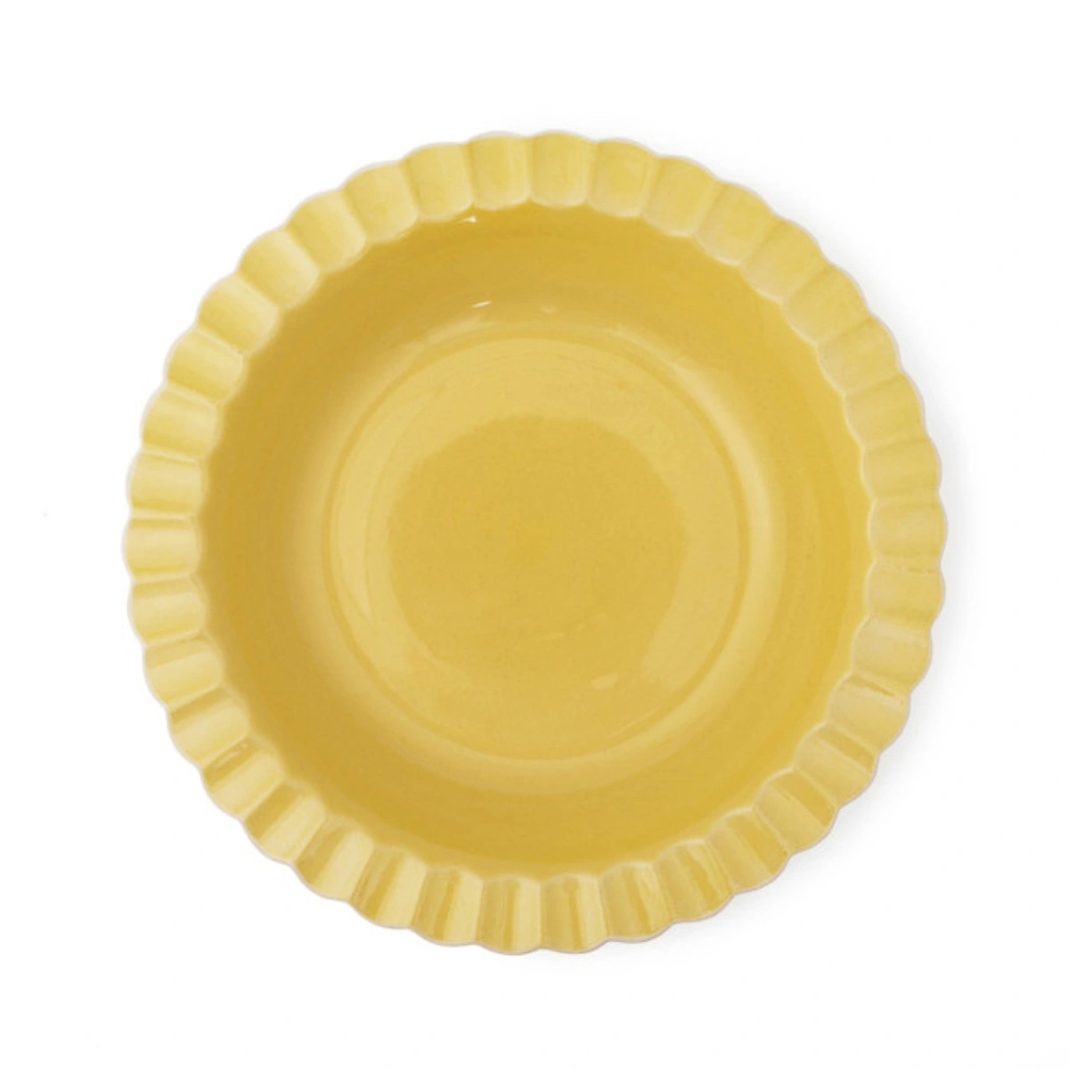 Misa została wykonana z odpornej kamionki, co zapewnia jej trwałość i odporność na uszkodzenia. Kamionka to materiał, który doskonale przewodzi ciepło, dzięki czemu potrawy dłużej utrzymują optymalną temperaturę. Dodatkowo, misa charakteryzuje się ozdobnym falowanym brzegiem, który nadaje jej elegancki wygląd, idealny do serwowania dań na stole.