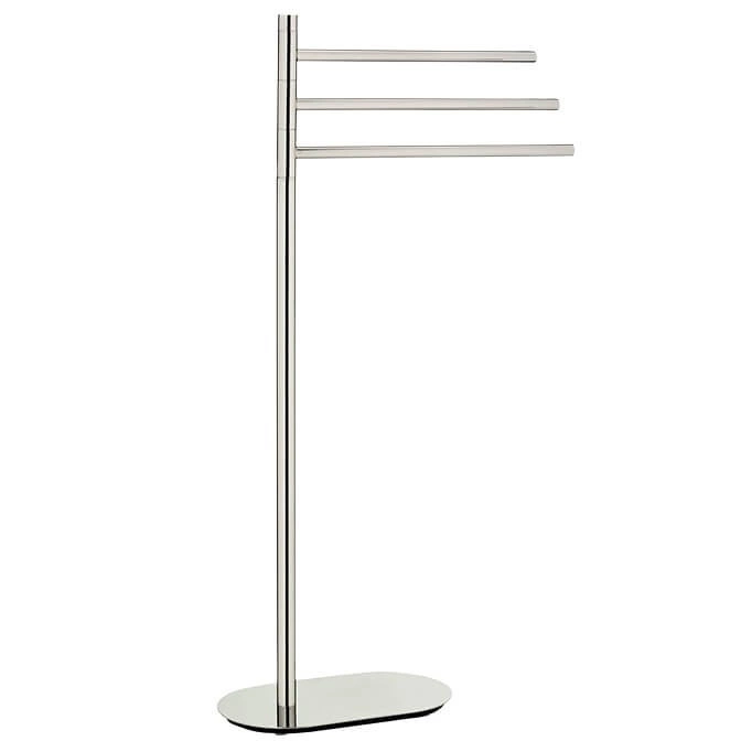 Nie musisz martwić się o stabilność wieszaka – jego solidna konstrukcja oraz stabilna podstawa gwarantują, że będzie on bezpieczny w użytkowaniu, nawet w przypadku dużej liczby zawieszonych ręczników. Dodatkowo, metalowa powierzchnia w kolorze srebrnym polerowanym nadaje elegancki wygląd, który doskonale komponuje się z innymi elementami wyposażenia łazienki.
