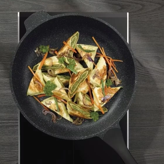 - Nieprzywieralna powłoka - Patelnia posiada 3-warstwową powłokę nieprzywieralną, która umożliwia łatwe smażenie i czyszczenie.