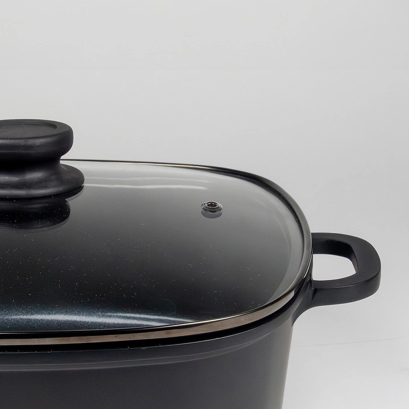 - Szklana pokrywka w komplecie: Dołączona pokrywka umożliwia kontrolowanie procesu gotowania bez konieczności otwierania naczynia, co pozwala na zachowanie aromatu i wartości odżywczych potraw.