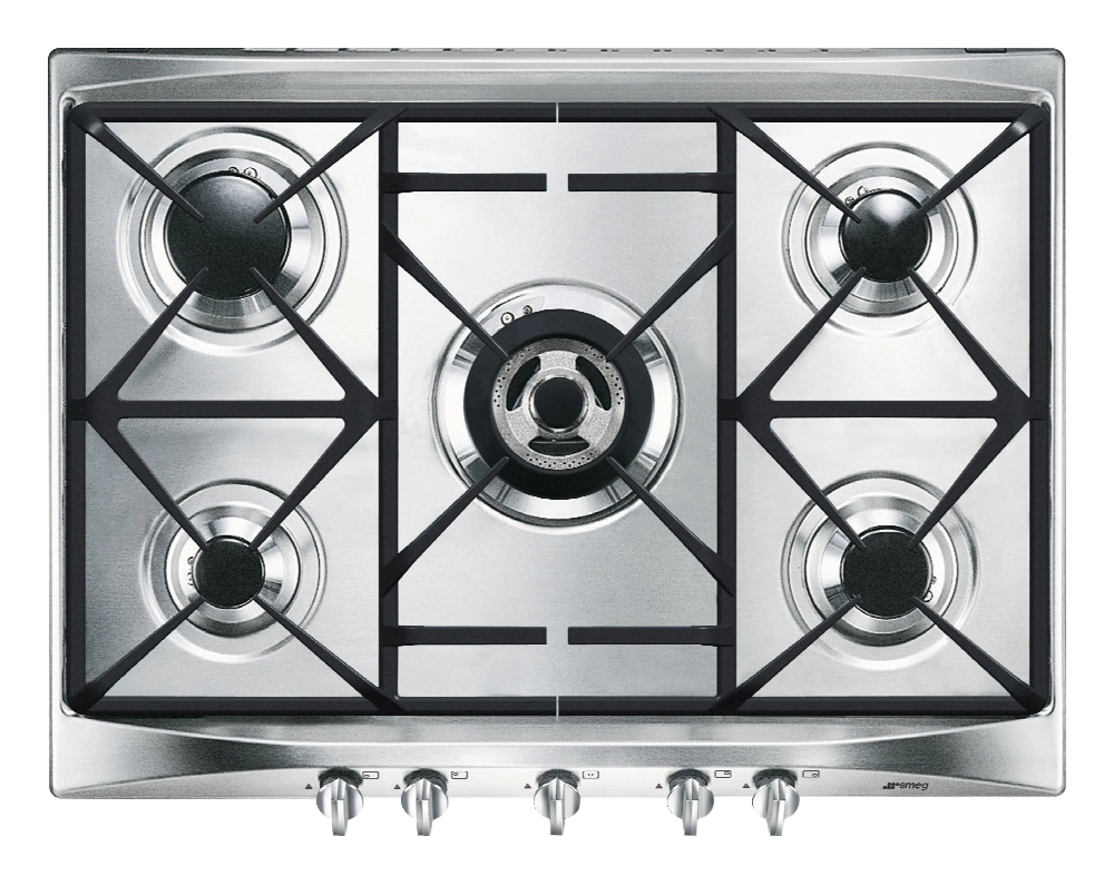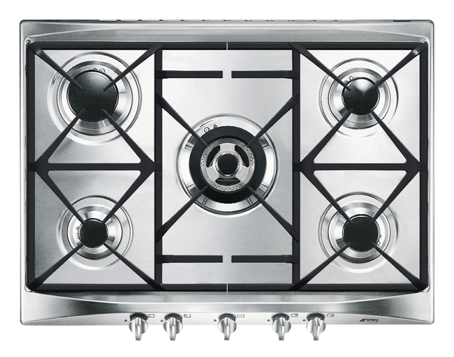 Odkryj nową jakość gotowania z płytą gazową Smeg o szerokości 70 cm. Model Selezione łączy elegancję stali nierdzewnej z nowoczesnymi rozwiązaniami technologicznymi, które spełnią oczekiwania nawet najbardziej wymagających kucharzy. Dzięki pięciu palnikom, w tym jednemu o dużej mocy, gotowanie stanie się nie tylko łatwiejsze, ale również przyjemniejsze.