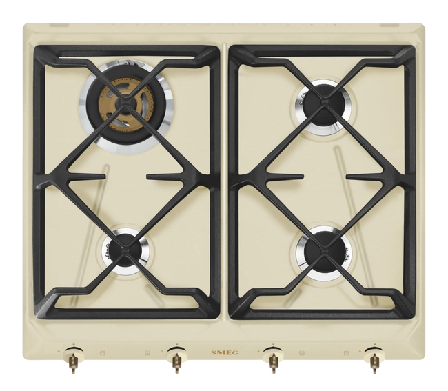 Smeg - Płyta Gazowa, 60 Cm, Coloniale Coloniale Srv864Pogh Kremowy (Pokrętła W Kolorze Mosiężnym).